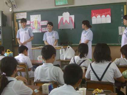 1年生、3年生、5年生を対象に大阪府歯科医師会付属専門学校の学生さんたちによる