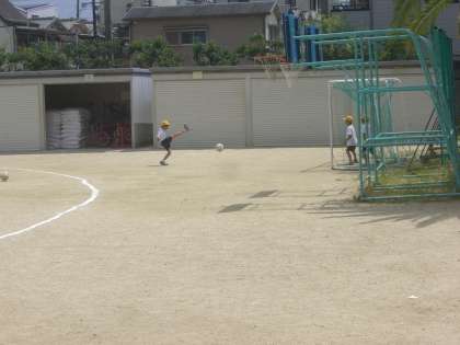 ゴールキーパー2人で、PKの練習をしています。シュートは決まったでしょうか。