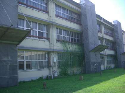 エアコン設置工事が本格的に始まりました。足場が組まれ、各教室も配線、配管工事が行われています。
