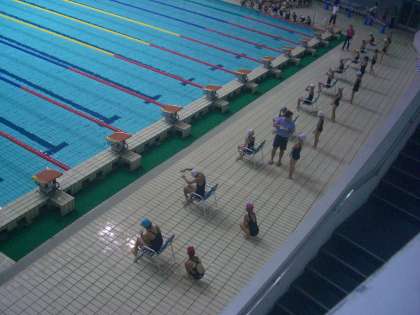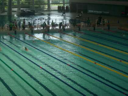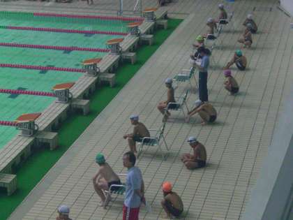 飛び込み用プールでは、シンクロの練習風景が見えます。