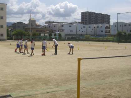 プールでは最後の水泳、運動場では、運動会の練習が始まっています。