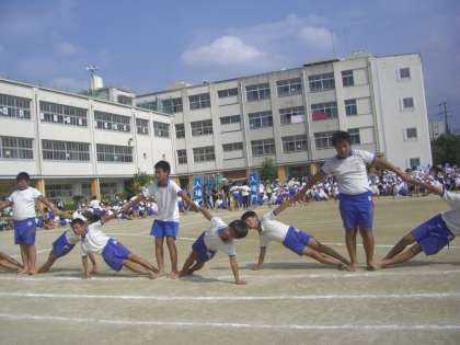 迫力ある高学年のリレーと団体演技