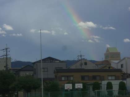 先日は、雨の後に生駒山を背にしてきれいな虹が出ていました。