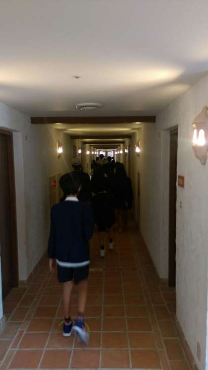 食事を終え、部屋にもどる子どもたちです。