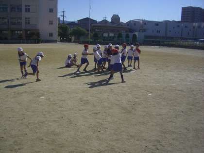 近くにいた1年生に「ここでお相撲してみたら」と言うと、