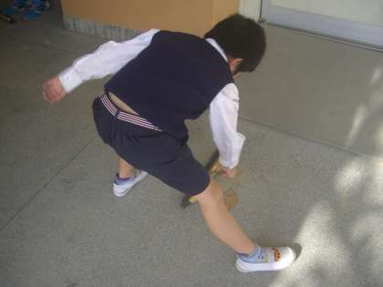 足を踏ん張り、腰をかがめて掃き集める姿がありました。