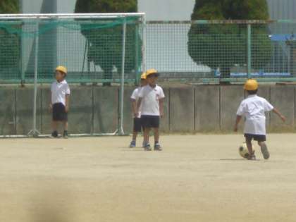 この時期には、まだ、組織的に遊ぶことがなかなかできない1年生ですが、