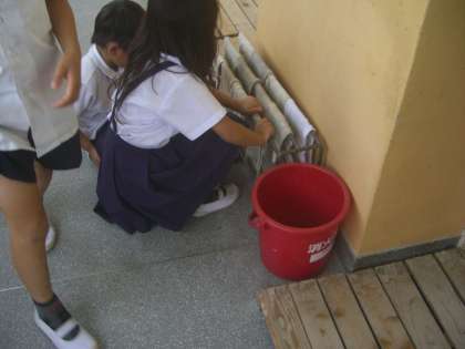 どんなに暑くても やるべきことは、きっちりやっています。 雑巾をきれいに並べて干しています。