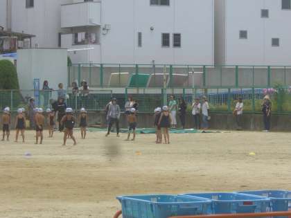 3時間目は、1年生がプール参観、5年生はリレー練習を行いました。