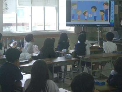 今日は、イングリッシュデイ。全学年が、わずかな間イングリッシュタイム。