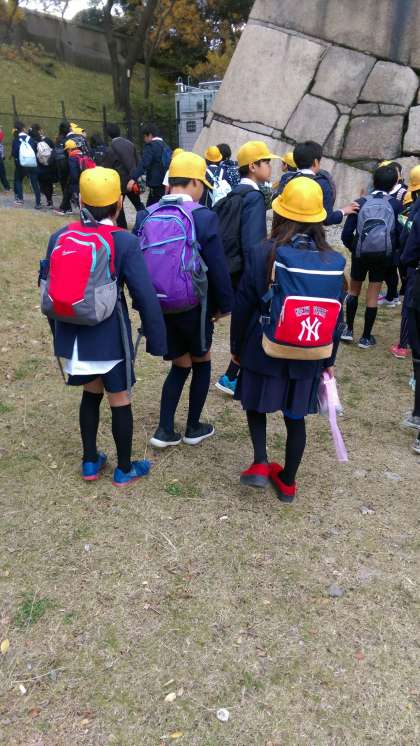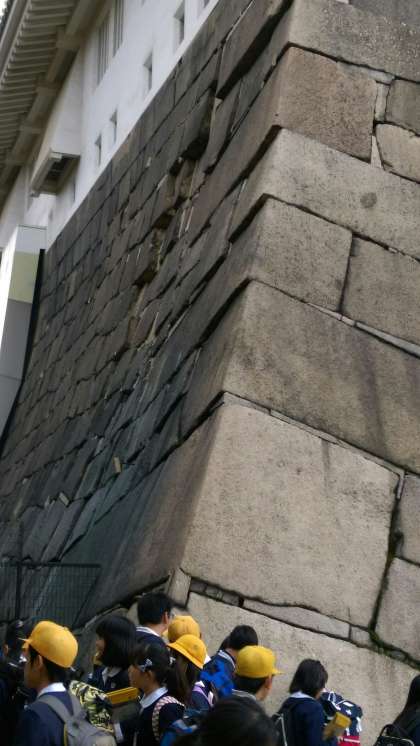 大道芸を見た後は、爆弾でずれた石積を見学。