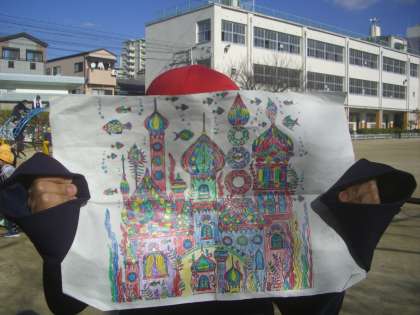 思い通りにできあがった作品を見てほしいと、一人の男の子が恥ずかしそうに近づいてきました。