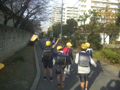 登校時の顔とはまったくちがって、楽しそうな表情です。遊びながら、笑いながら、歌いながら、うれしそうに家に帰っていく子どもたちです。