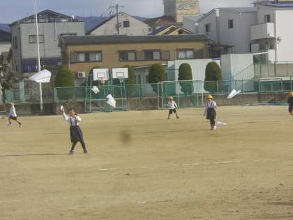凧揚げに夢中になる1年生。たこ糸をにぎって走る走る走る走る。