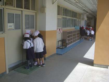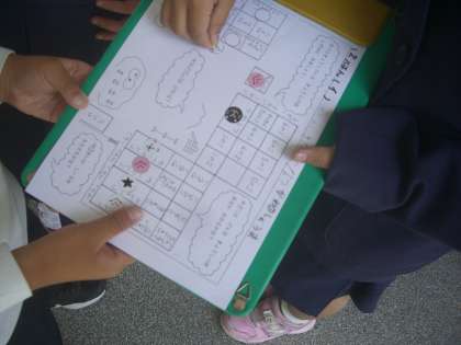 ドアの前には、絵とシールがあり、それぞれの場所のシールを貼りながら