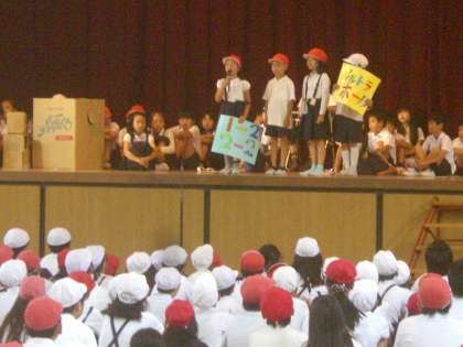 6年生が中心となって、異学年たて割り班をつくり、それぞれの学級の出し物を見学する「すきやねん茨田東」が行われました。