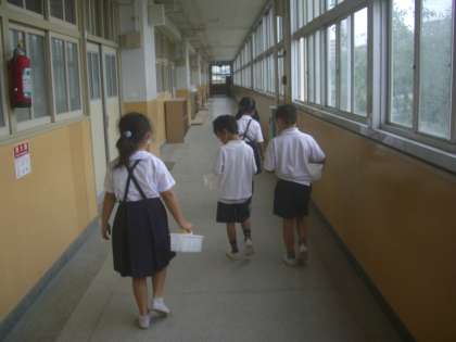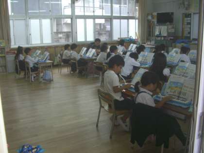 1年生はピアニカで演奏、2年生は絵具の水汲み、