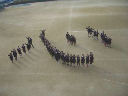 卒業アルバムの写真撮影がありました。6年生全員での一文字は「心」。