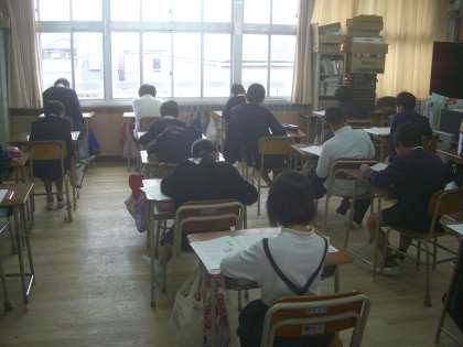 いつになく緊張した様子で学力経年調査に取り組んでいます。
