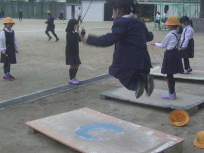 5年生や6年生が、二重跳びを簡単に何十回もする様子にあこがれた2年生。