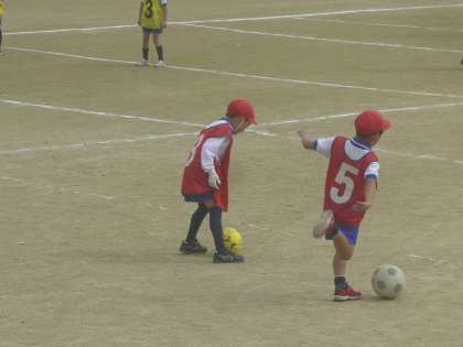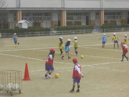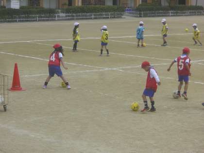 1年生が、サッカーボールで基本練習をくりかえしています。