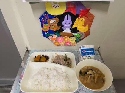 給食の「いとこ煮」は、かぼちゃとあずきを使っています。