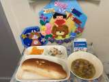 今日の献立は、 黒糖パン トンカツ ミネストローネ 和なし(缶づめ) 牛乳 ...
