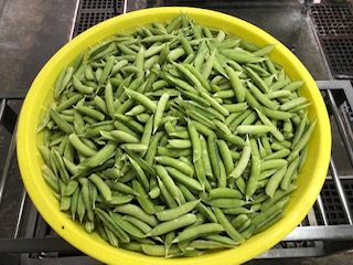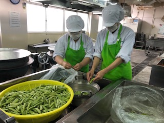 えんどうの卵とじは、今が旬のえんどうをさやから出したものを調理しています。