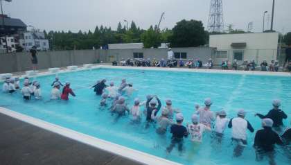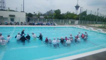 やはり普段の水着だけの時とは違うので、児童たちは動きにくそうにしていました。今回のこの着衣泳が児童たちにとって、とても良い体験になったと感じています。