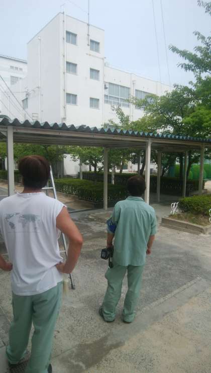 今後の暑さ対策の一つとして、校舎から講堂をつなぐ渡り廊下にミストシャワーを本日設置しました。夏休みより管理作業員さん中心に計画を立て、コツコツと設置に向けて準備をしていました。ミストシャワーを浴びてみると、ひんやりとして、とても気持ちがよかったです。