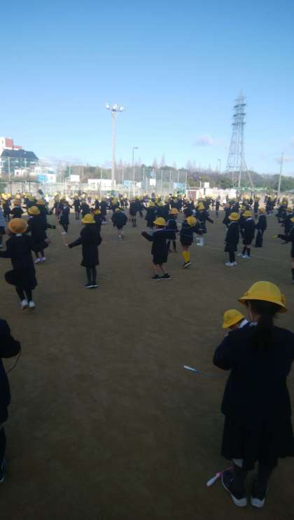 昨日の朝の時間は、全校児童でなわとびをしました。