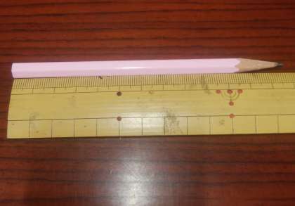 いま、先生がもっているえんぴつの長さは12cm7mmでした。