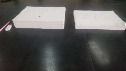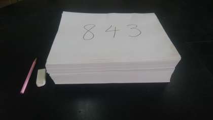 2まい目のしゃしんは、紙843まいの実さいのまい数です。(おり紙を用意できなかったので紙にしました。)