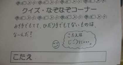 下のがぞうのクイズにチャレンジしてみてください。こたえのはっぴょうはまたごじつに。(あしたとはかぎりません。)