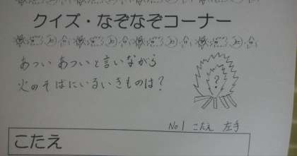 下のしゃしんのクイズにチャレンジしてみてください。ぜんかいのこたえはしゃしんのみぎしたのほうにあります。