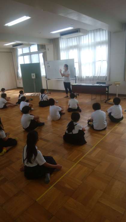 今週午前中に登校するグループでは発育測定を実施しています。児童同士の間隔をよりとるために、測定は保健室ではなく多目的室で行っています。またそのときには、保健の先生より新型コロナウイルスについてのお話しも児童にしています。手洗いうがいのしかたを改めて確認したり、マスクの着用のことや咳エチケットについてのお話しもありました。児童は、真剣にお話しを聞いていました。