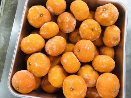 今年度、はじめて冷凍みかんが登場しました。今日はいつもよりも気温が高くなかったので、冷たいと言って食べている子どもたちが多かったですが、おいしいと食べていました。