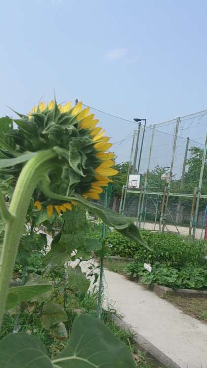 プール当番、研修、2学期の準備などなど・・・そのなかでも大変なことは、野菜や植物の水やりです!!1時間かけてていねいに水やりをします!そして、みんなの野菜たちは、すくすく大きくなります(・0・)ひまわりも太陽の光をあびて気持ちよさそうですね!