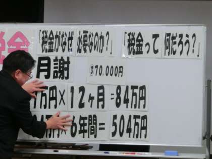 税金の使われ方を詳しく説明された後、税金に関するクイズもありました。