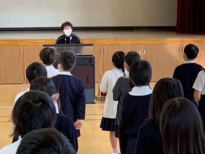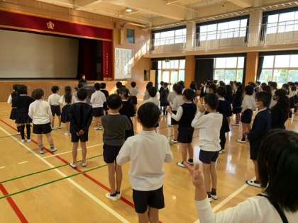 さて、今日は、音楽専科の喜連先生が全学年順番に音楽指導をしています。