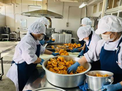 今日の給食ほ「コッペパン、アプリコットジャム、豚肉のオイスターソース焼き、厚揚げと大根の中華煮、デコポン、牛乳」です。