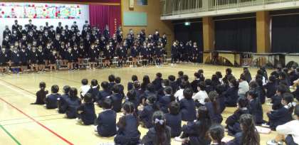 最初は、1年生が元気いっぱいにお祝いのことばや歌を披露してくれました。