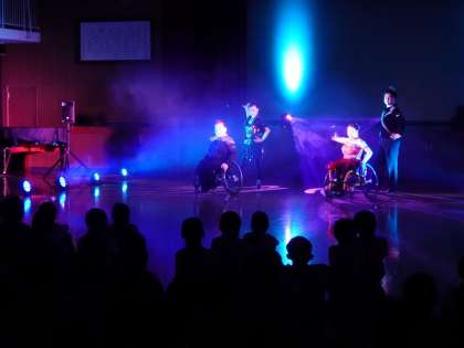 4・5・6年生が、講堂で車いすダンスを鑑賞しました。美しいダンスに魅了されました。それだけでなく、自分と違う立場で生きる人の生き方や思いを感じたり、自分の人間関係や生き方を考えたりするよいきっかけになりました。