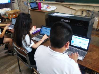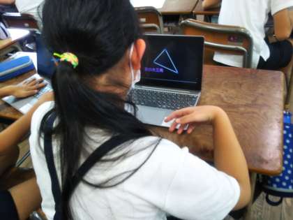 理科の時間の様子です。授業時間に実物を観察することのできない星空の様子を、タブレットを使い、映像で確認しました。