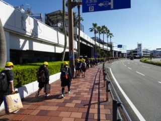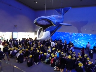 鳥羽水族館での自由行動が終わり、いよいよバスに乗り込み学校に戻っています。
