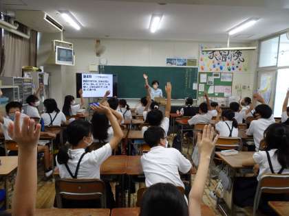 民族講師の方々(ソンセンニム)をお招きし、韓国・朝鮮の文化について学習しました。5年生では文字(ハングル)について、6年生では様々な文化等について教えていただきました。子どもたちは用意していただいたパワーポイントを見ながら、韓国・朝鮮の文化等について楽しみながら学ぶことができました。