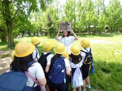 ウォークラリーのポイントゲームでの、児童の活動の様子です。