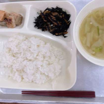 5月22日の給食は「さけのごまみそ焼き、五目汁、ひじきのいため煮、ごはん、牛乳」でした。