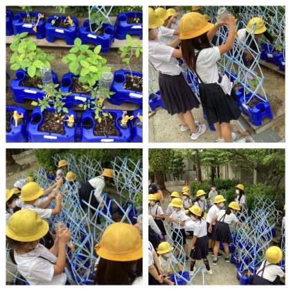 ミニトマトやきゅうり、枝豆など、すくすくと育っています。