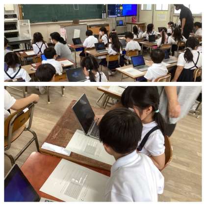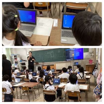 ということで、1年生は初めてPCを活用してログインの練習をしました。